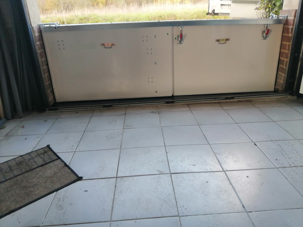 Serrage du batardeau pour porte de garage Batardeau en place devant une baie vitrée