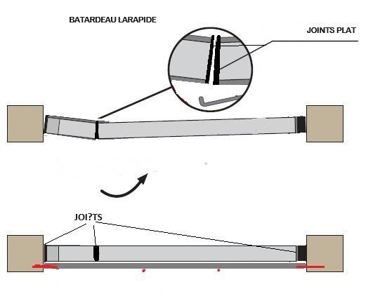 Vous retirez le batardeau puis mettez le haut de la barre de renfort sous chaque trait et de chaque coté comme la photo